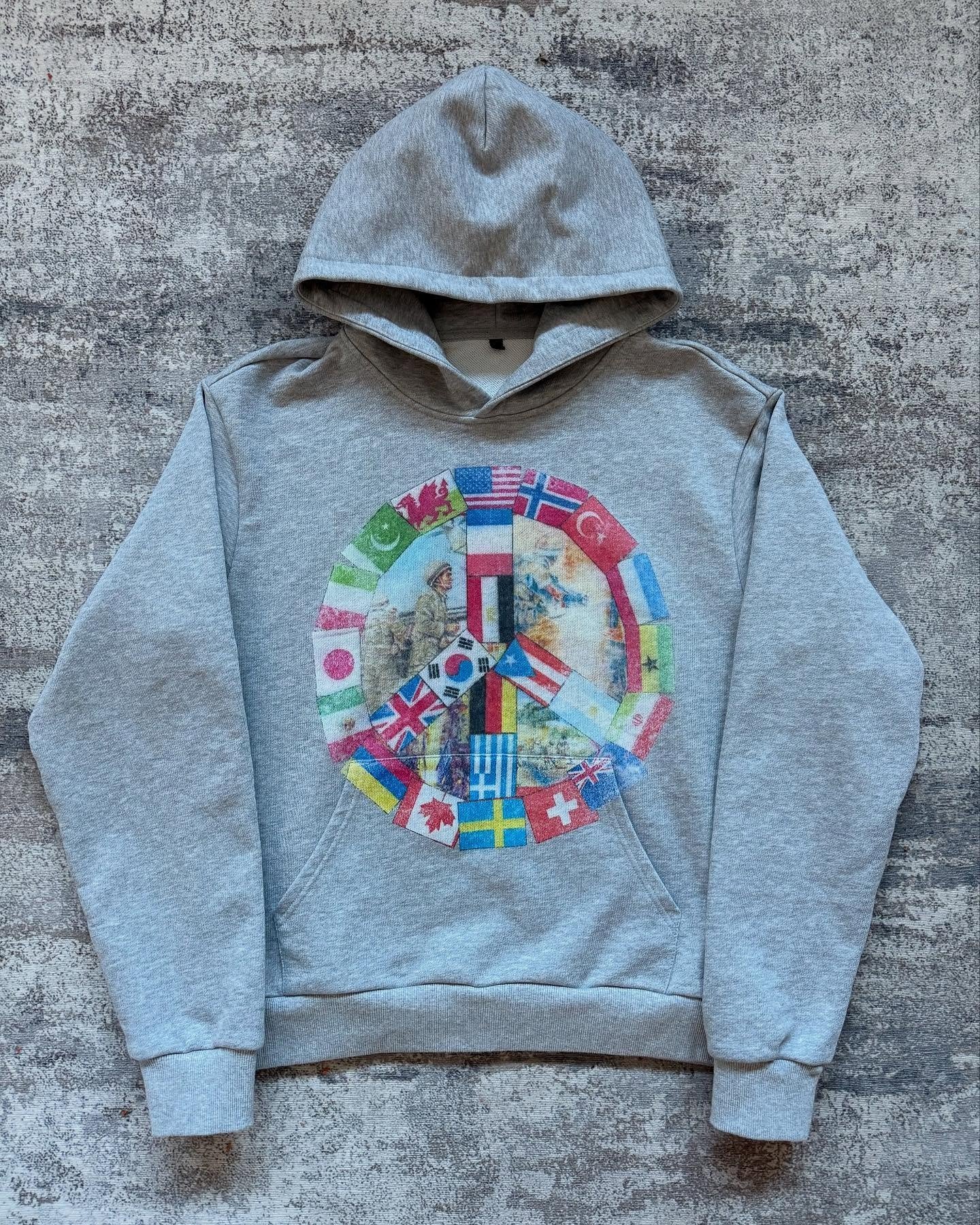 The Peaceinwar hoodie is versatile and easy to style, making it a strong addition to any streetwear wardrobe. Pair it with denim jeans or relaxed sweatpants for a classic streetwear look. It also works perfectly with cargo pants and sneakers for a modern urban outfit. During colder months, you can layer it with a puffer jacket or bomber jacket to create a bold winter style. Accessories like caps, crossbody bags, or statement sneakers can further enhance the outfit and complete the modern streetwear aesthetic.